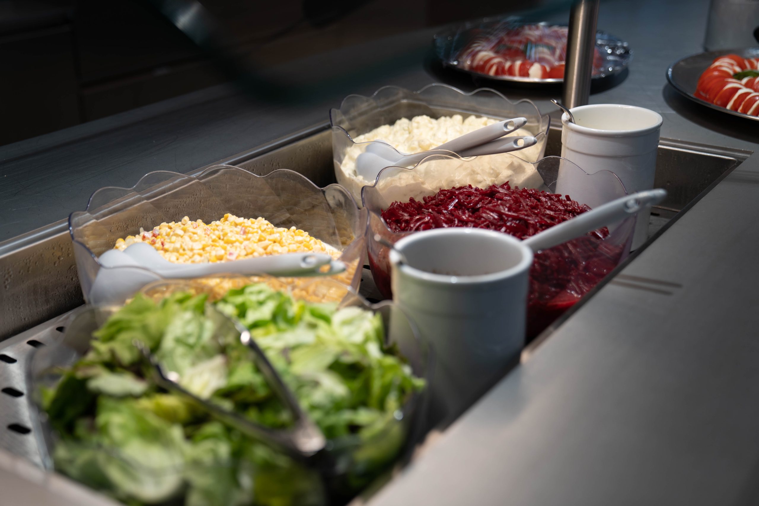 diverse Salate, Beilagen, Saucen, Geschirr u.v.m.